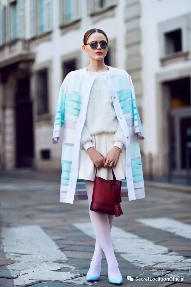 腰线记得永远要高!切割出黄金比例。一身白干净利落。身上最多不要超过三种颜色!