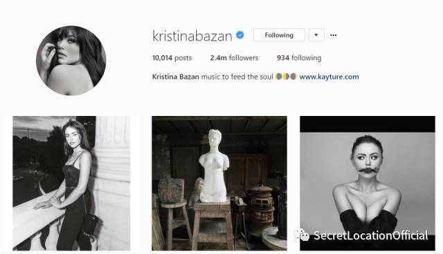 Kristina Bazan的 Instagram账号目前有 240万的粉丝,童鞋们随意感受一下吧。