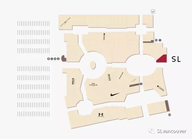 以下为温哥华机场附近奥特莱斯地图 SL 店铺位置